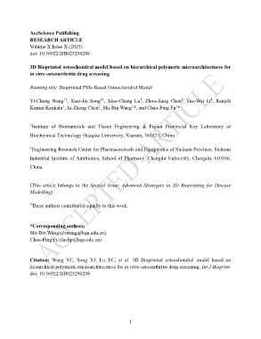 Citation: Wang YC, Song XJ, Lu XC, et al. 3D Bioprinted osteochondral model based on