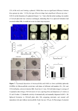 deposition with and without microscaffold. Scale bars are 100 µm. E) Percentage of spheroid