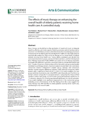 Copyright: © 2023 Author(s). Keywords: Music therapy; Home healthcare; Elderly; Overall health