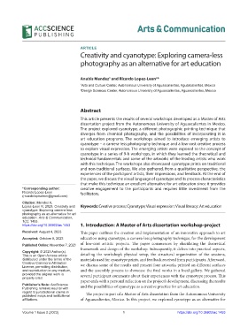 Lopez-Leon R, 2023, Creativity and Keywords: Creative process; Cyanotype; Visual expression; Visual literacy; Art education