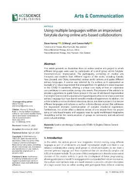 Received: October 21, 2023 Keywords: Creative arts therapy; Creatives arts; COVID-19; English; Chinese; Second