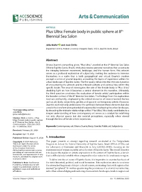 doi: 10.36922/ac.3023 Keywords: Contemporary art; Oriana Duarte; Body; Gender; Public art; Subjectivity