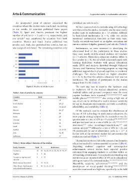 number of articles (n = 5 and n = 4, respectively), and by basic/school mathematics (n = 4), while two articles