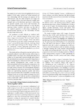 audiovisual analysis used. Table 2. Bring it home to me by Coca‑Cola – “Better