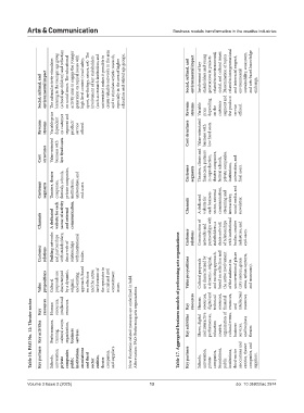 Value propositions resources Cultural Human proposals are resources, characterized intellectual by a dynamic, resources. original, and exciting approach, based on reflection and the active involvement of the spectator in social and civil commitment issues. Table 17. Aggregated business models of performing arts organizations Value propositions Key resources Cultural proposals Human are characterized by reso