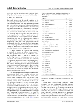 contemporary art industry have evolved. Table 1 presents and contextualize contemporary visual artists’ interview