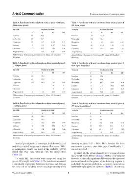 Table 6. Familiarity with and emotions about musical piece 3 Table 9. Familiarity with and emotions about musical piece 6