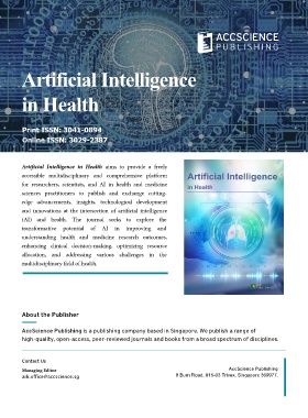 Artificial Intelligence in Health aims to provide a freely