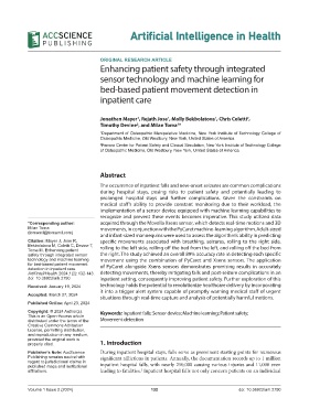 Copyright: © 2024 Author(s). Keywords: Inpatient falls; Sensor device; Machine learning; Patient safety;