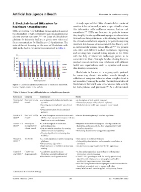 EHR in the health-care sector is summarized in Table 3. as cardiovascular disease, cancer, HIV, etc. For patients