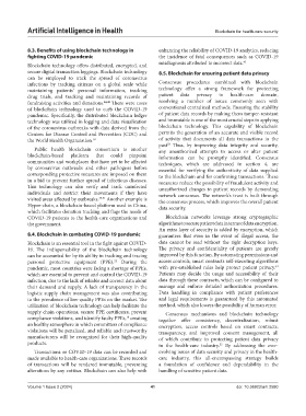 pandemic. Specifically, the distributed blockchain ledger of patient data records by making them tamper-resistant