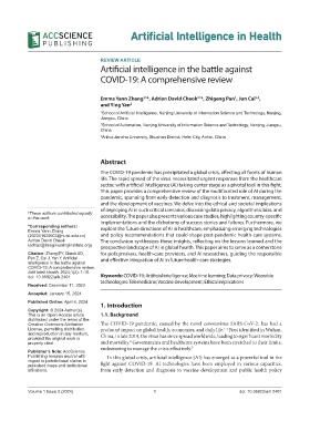 doi: 10.36922/aih.2401 Keywords: COVID-19; Artificial intelligence; Machine learning; Data privacy; Wearable