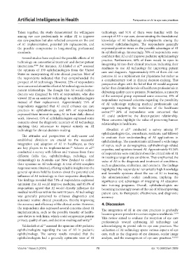 the respondents also expressed several concerns about AI The integration of AI in eye care practices is gradually