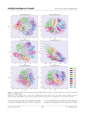 Figure 3. UCI Digits data: Clustering of digit images along ISM, MVMDS, NMF, PCA, MOFA+, and GFA components in 2D scatterplots of the MDS