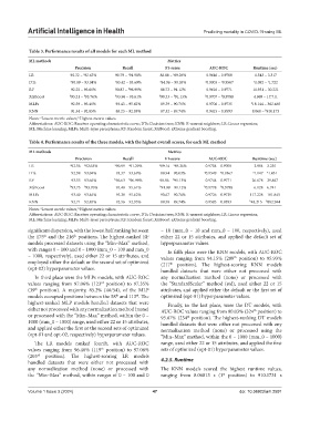 Table 4. Performance results of the three models, with the highest overall scores, for each ML method