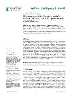 learning. Artif Intell Health. Keywords: Clinically isolated syndromes; Multiple sclerosis; Machine learning; Binary