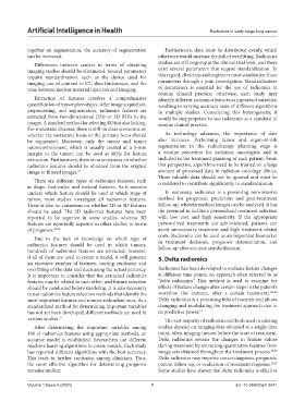 features may be related to each other, and feature selection “delta radiomics.” This method is used to examine the