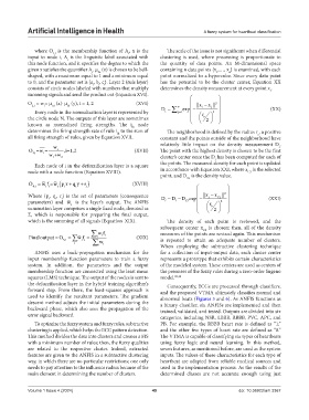 to 0, and the parameter set is {a, b, c}. Layer 2 (rule layer) has the potential to be the cluster center, Equation XX