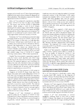 segmentation works in COVID-19. (ANN), and SVM classifiers were used for normal,