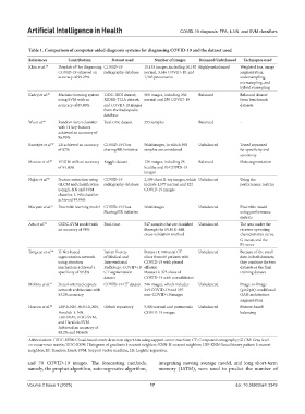 Table 1. Comparison of computer‑aided diagnosis systems for diagnosing COVID‑19 and the dataset used