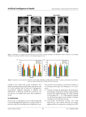 Figure 6. Sensitivity (A) and specificity (B) of ResNet (34), DenseNet, SeResNext, and EfficientNet for COVID-19, normal, and pneumonia class detection