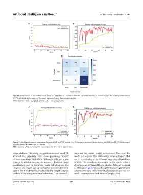 Figure 7. Model performance comparison between CNN and ViT models. (A) Performance accuracy versus epochs for CNN model. (B) Performance