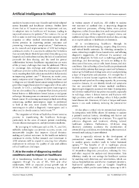 deployment to enhance the quality of care and address options. 13-33 The benefits of AI in healthcare extend