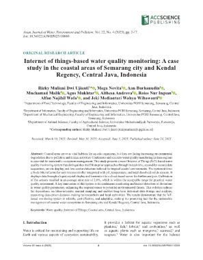 Keywords: Water quality; Internet of Things; Coastal area; Central Java; Indonesia