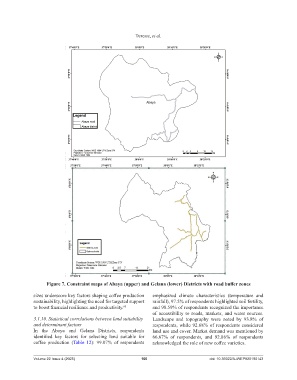 Figure 7. Constraint maps of Abaya (upper) and Gelana (lower) Districts with road buffer zones