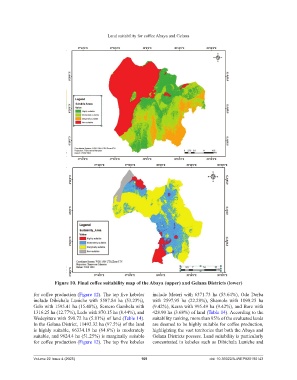 Figure 10. Final coffee suitability map of the Abaya (upper) and Gelana Districts (lower)