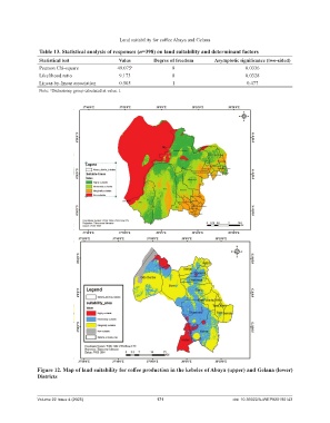 Table 13. Statistical analysis of responses (n=398) on land suitability and determinant factors