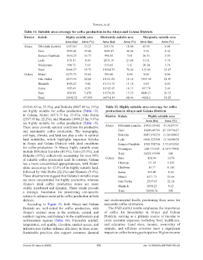 (14246.49 ha; 25.3%), and Dokicha (8007.08 ha; 14%) Table 15. Highly suitable area coverage for coffee