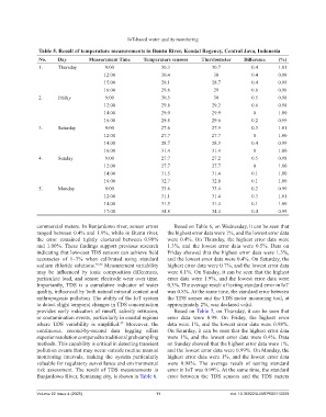 Table 5. Result of temperature measurements in Buntu River, Kendal Regency, Central Java, Indonesia