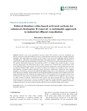 Keywords: Bombax ceiba; Activated carbon; Rhodamine B adsorption; Wastewater treatment; Chemical activation;