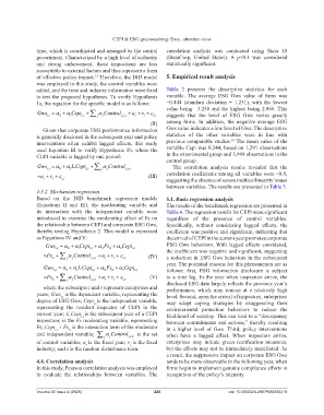Gws , i t α = 0 α + 1 , i t α +Cepi 2 Fs it α + 3 Cepi , i t ESG Gws behaviors. With lagged effects considered,
