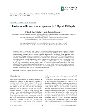 assesses the current post-war state of solid waste management in the city of Adigrat, Ethiopia. It aims to evaluate