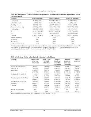 Table A9. The impact of Cyclone Bulbul on rice production (standardized coefficients of panel fixed effects