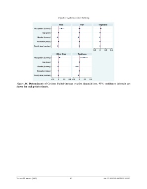 Impact of cyclones on rice farming Figure A6. Determinants of Cyclone Bulbul‑induced relative financial loss. 95% confidence intervals are shown for each point estimate. Volume 22 Issue 4 (2025) 63 doi: 10.36922/AJWEP025100063