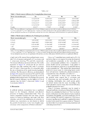 Table 4. Metal removal efficiency by Potamogeton pectinatus