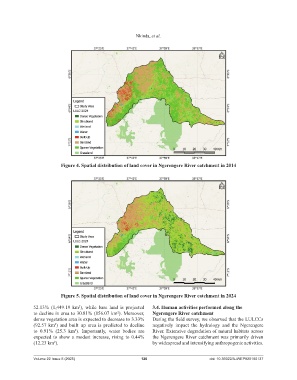 to decline in area to 30.81% (856.07 km ). Moreover, Ngerengere River catchment