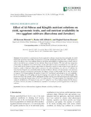 season, the effects of two foliar nutrient solutions (Al-Nibras and Kinglife) on eggplant yield, its traits, and soil
