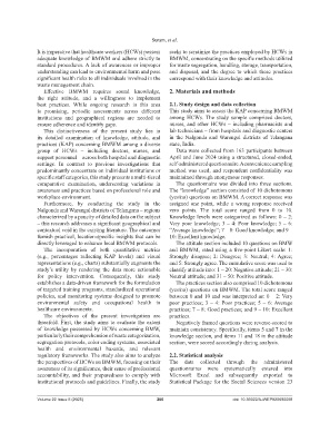 is promising, periodic assessments across different This study aims to assess the KAP concerning BMWM