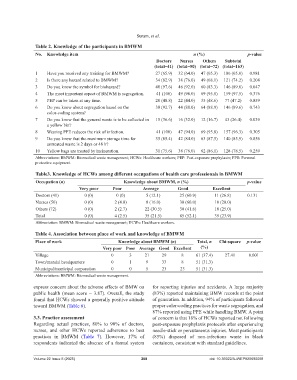Table3. Knowledge of HCWs among different occupations of health care professionals in BMWM