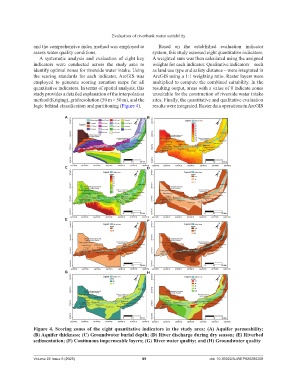 Figure 4. Scoring zones of the eight quantitative indicators in the study area: (A) Aquifer permeability;