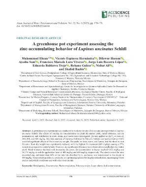 Abstract: A greenhouse pot experiment was conducted to evaluate the zinc (Zn) accumulation potential of Lupinus