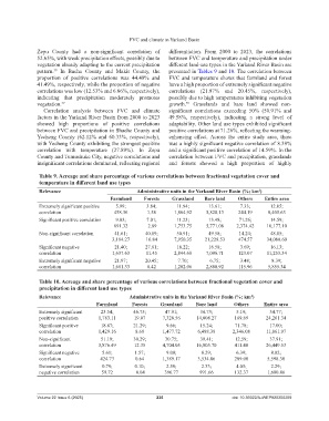 Table 9. Acreage and share percentage of various correlations between fractional vegetation cover and