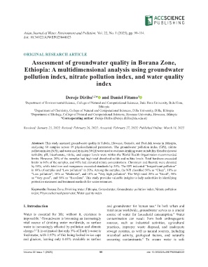 Keywords: Borana Zone; Drinking water; Ethiopia, Groundwater; Groundwater pollution index; Nitrate pollution
