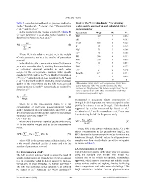 Table 3, were determined based on previous studies by Table 4. The WHO standards 33,34 for drinking