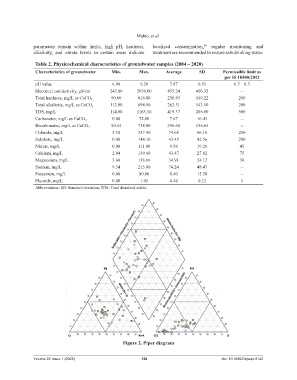 Characteristics of groundwater Min. Max. Average SD Permissible limit as