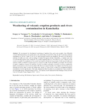 Asian Journal of Water, Environment and Pollution. Vol. 22, No. 1 (2025), pp. 33-41.